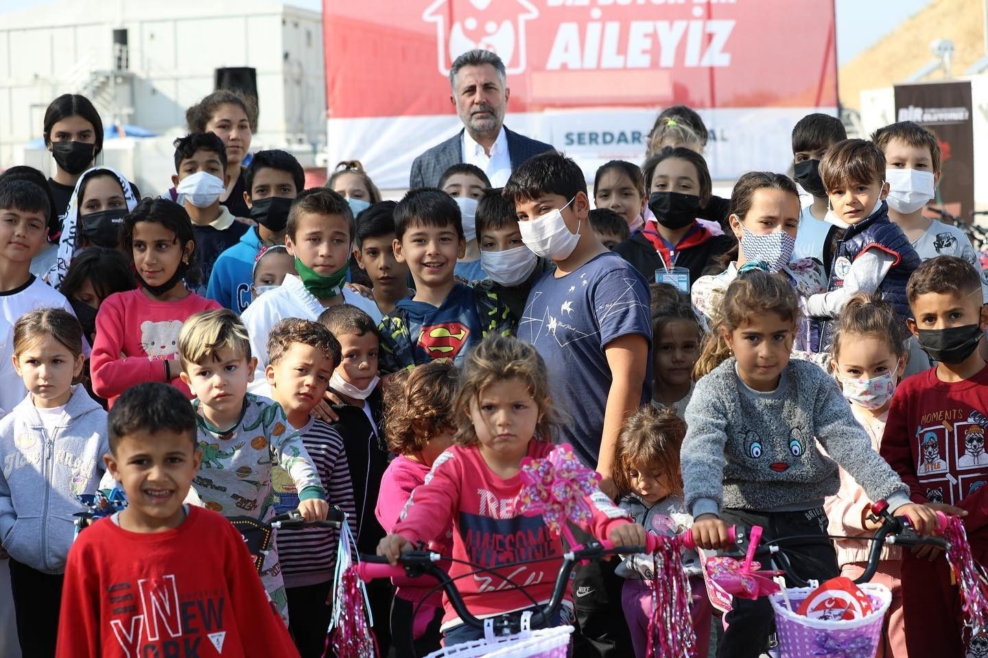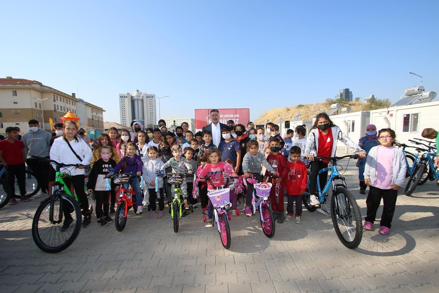 Bayraklı Belediye Başkanı Serdar Sandal, geçtiğimiz yıl yaşanan İzmir depremi sonrası yaşamlarını konteyner kentte sürdüren çocuklara bisiklet sürprizi yaptı.