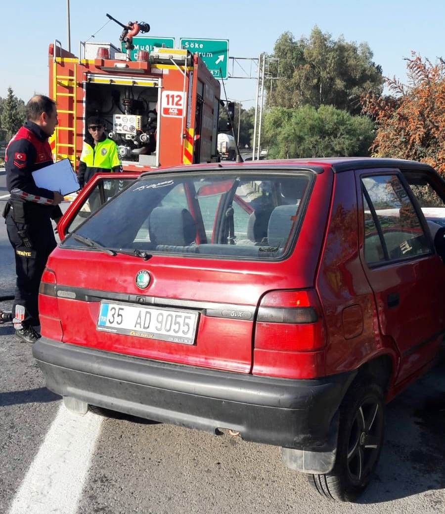 Edinilen bilgiye göre, Aydın-İzmir otobanı eski gişeler mevkiinde sürücüsünün direksiyon hakimiyetini kaybettiği 35 AD 9055 plakalı otomobil bariyerlere çarparak alev aldı. Kaza ihbarı üzerine bölgeye Aydın Büyükşehir Belediyesi İtfaiye ekipleri sevk edildi. İtfaiye ekipleri araçtaki yangını söndürürken, kazada yaralanan araç sürücüsü ambulansla hastaneye kaldırıldı.