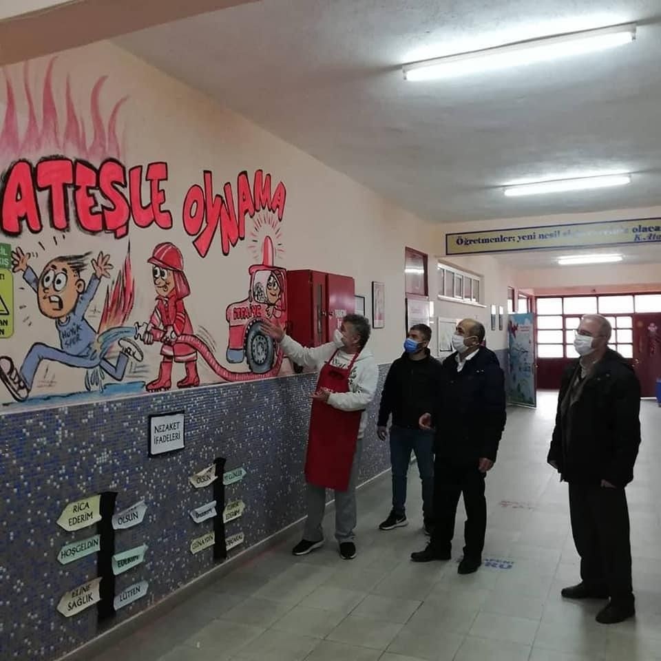 İlçe Milli Eğitim Müdürü Süleyman Ünal'ın da zaman zaman karikatürist Mehmet Duru ile birklikte eline fırçayı alıp grafiti çizimlerine katkı yaptığı çalışmalar çerçevesinde, yöredeki 4 okulda bu faaliyetin gerçekleştirildiği belirtildi. Orman yangınlarına karşı ateşle oynanmaması gerektiğine yönelik mesajlar veren çizimlerin yanı sıra, 15 Temmuz darbe girişiminin sembol isimlerinden Şehit Astsubay Başçavuş Ömer Halisdemir, Atatürk ve Türk bayrağı, matematik ve sayılar, Türk halk ozanı Yunus Emre, milli şairimiz Mehmet Akif Ersoy okullarda yapılan çizimlerle duvarlara resmedildi.