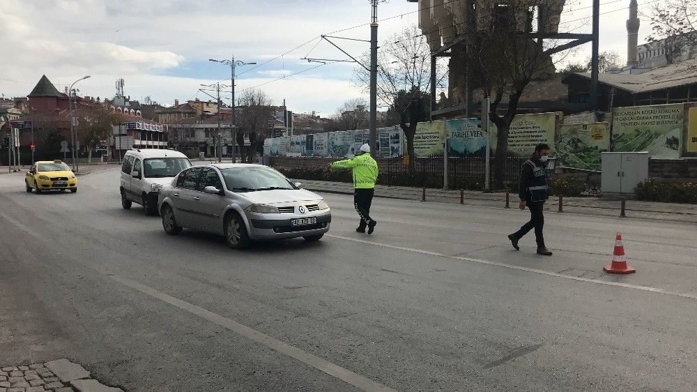 Konya'da hafta sonu sokağa çıkma kısıtlamasında polis ekipleri denetimlerini sürdürüyo