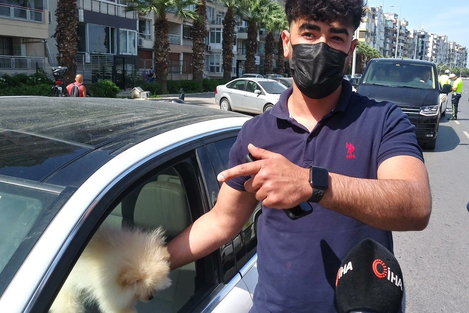 İzmir'de polis ekiplerince gerçekleştirilen tam kapanma denetimine takılan bir vatandaş, arabadaki köpeğini kucağına alarak önce köpeğini yıkatmaya gittiğini, ardından da aşı yaptırdığını söyledi ama cezadan kaçamadı.