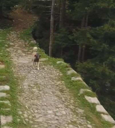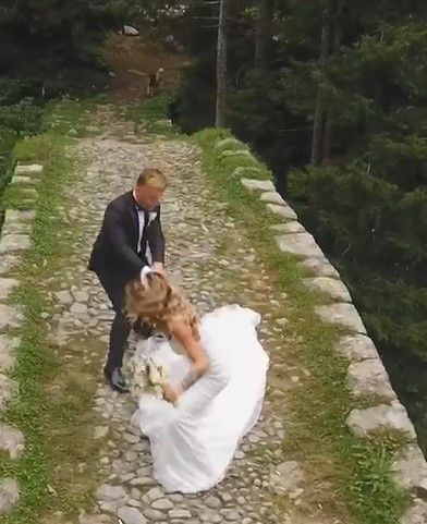Rize'de düğün için klip çektiren Çağlar Paliç ve Beyza Şimşek çiftini kayıt altına almak için havalanan drone görüntü almak üzere yükseldiği sırada bir çoban köpeği ortaya çıktı. Köpeği gören çift bir an paniğe kapılarak taş köprünün üzerinden kaçmaya başladı. Köpek çifti kovalarken, o anlar ise drone ile anbean görüntülendi.