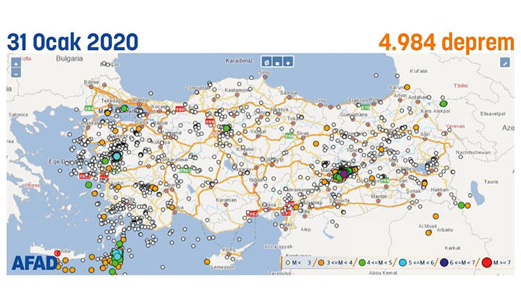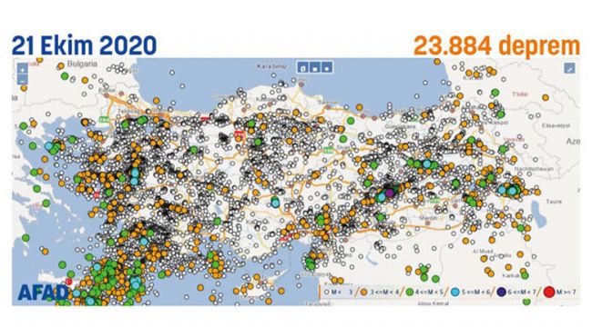 1-31 Ocak arası 4 bin 984 sarsıntının yaşandığı Türkiye genelinde, o günden 21 Ekim'e kadar 19 bine yakın sarsıntı eklendi, toplam 23 bin 884 oldu.