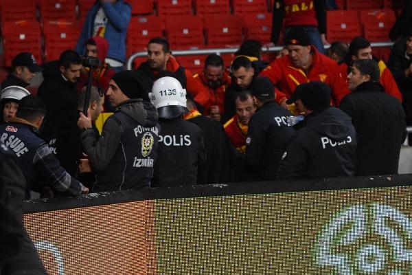 İZMİR'de Spor Toto 1'inci Lig'de mücadele eden Göztepe ile Altay arasında oynanan derbi maçında sahaya giren Göztepespor taraftarı korner direği ile Altay kalecisi Ozan'ı darbetti. Hakem maçı tatil ederken, iki takım futbolcuları ve yöneticileri arasında koridorda da arbede yaşandı. Güvenlik güçlerinin müdahalesiyle olaylar sonlandırılırken, bazı şüpheliler gözaltına alındı.