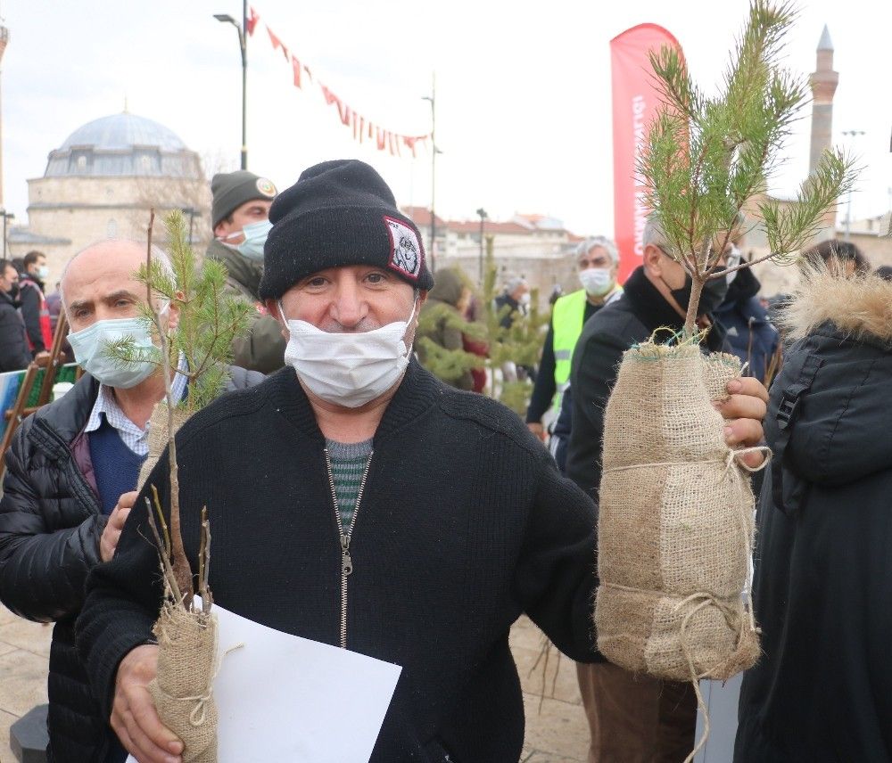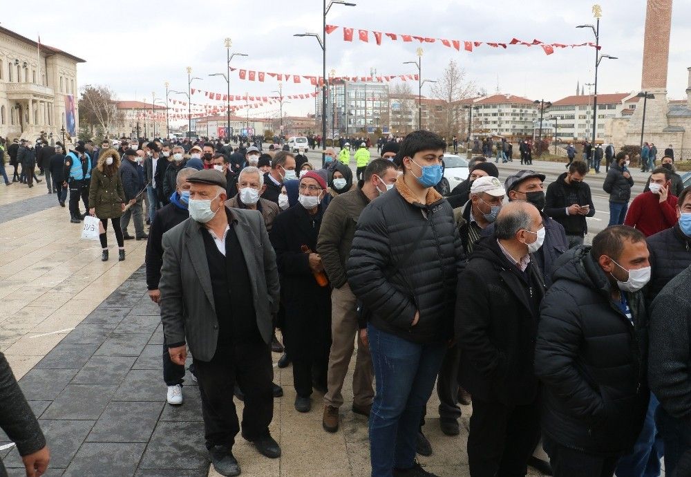 Sivas'ta Nevruz kutlamasında vatandaşların fidan alabilmek için metrelerce kuyruk oluşturması dikkat çekti.