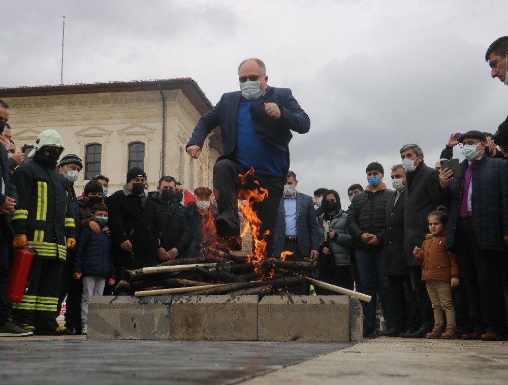 Nevruz kutlamaları Sivas kent meydanında bulunan Atatürk ve Kongre Müzesi bahçesinde yapıldı. Kutlamalara Sivas Valisi Salih Ayhan, Sivas Belediye Başkanı Hilmi Bilgin, Sivas Cumhuriyet Üniversitesi Rektörü Prof. Dr. Alim Yıldız, Sivas Bilim ve Teknoloji Üniversitesi Rektörü Prof. Dr. Mehmet Kul, bazı il protokol üyeleri ve vatandaşlar katıldı. Korona virüs tedbirleri kapsamında yapılan kutlama saygı duruşu ve İstiklal Marşının okunması ile başladı. Kur'an-ı Kerim tilavetinin ardından program halk oyunu gösterilerinin sergilenmesi ve il protokolünün yumurta tokuşturması ile devam etti. Daha sonra il protokolü örs üzerinde çekiçle demir döverek Nevruz ateşini yaktı. Yakılan Nevruz ateşinin üzerinden protokol üyeleri ve vatandaşlar atladı. Okçuluk ekibinin gösterisinin ardından il protokolü de ok atışı yaptı. Kutlamalar son olarak Orman İşletme Müdürlüğünce düzenlenen fidan dağıtımı ile devam etti. Ücretsiz dağıtılan fidanları alabilmek için metrelerce kuyruk oluşturan vatandaşlar ise dikkat çekti.