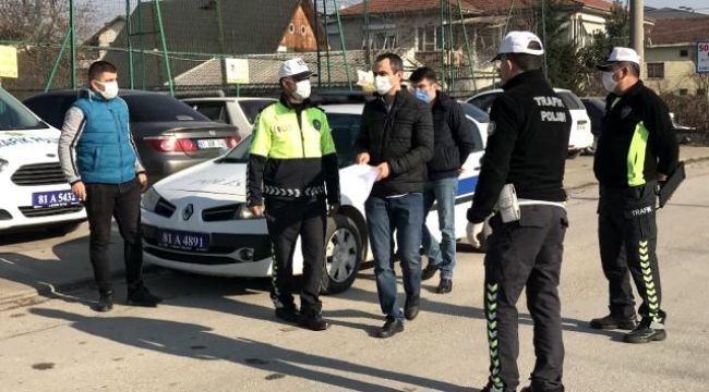 Düzce İl Emniyet Müdürlüğüne bağlı Trafik Tescil ve Denetleme Şube Müdürlüğü ekipleri, D-100 Karayolu Öztürkler Kavşağı İstanbul istikametinde araçları durdurarak sürücülerin emniyet kemeri kullanıp kullanmadığını denetledi. Uygulama esnasında durdurulan bir araçta bulunan 2 kişinin Covid-19 testlerinin pozitif olduğu ve karantinada bulunmaları gerektiği tespit edildi. Polis ekipleri karantinada olması gereken baba N.K. ile oğlu Ü.K. için filyasyon ekiplerine haber verdi. Olay yerine gelen filyasyon ekipleri karantinada olması gereken baba ve oğlu evlerine ulaştırdı. Karantina kurallarına uymayarak sokağa çıkan iki kişiye 3 bin 150'şer lira idari para cezası uygulandı. Ayrıca trafik ekipleri tarafından gerçekleştirilen denetimde, kurallara uymadığı belirlenen sürücüler hakkında işlem uygulanırken, sürücü N.K.'ya emniyet kemerini takmadığı gerekçesiyle 132 lira ceza yazıldı.