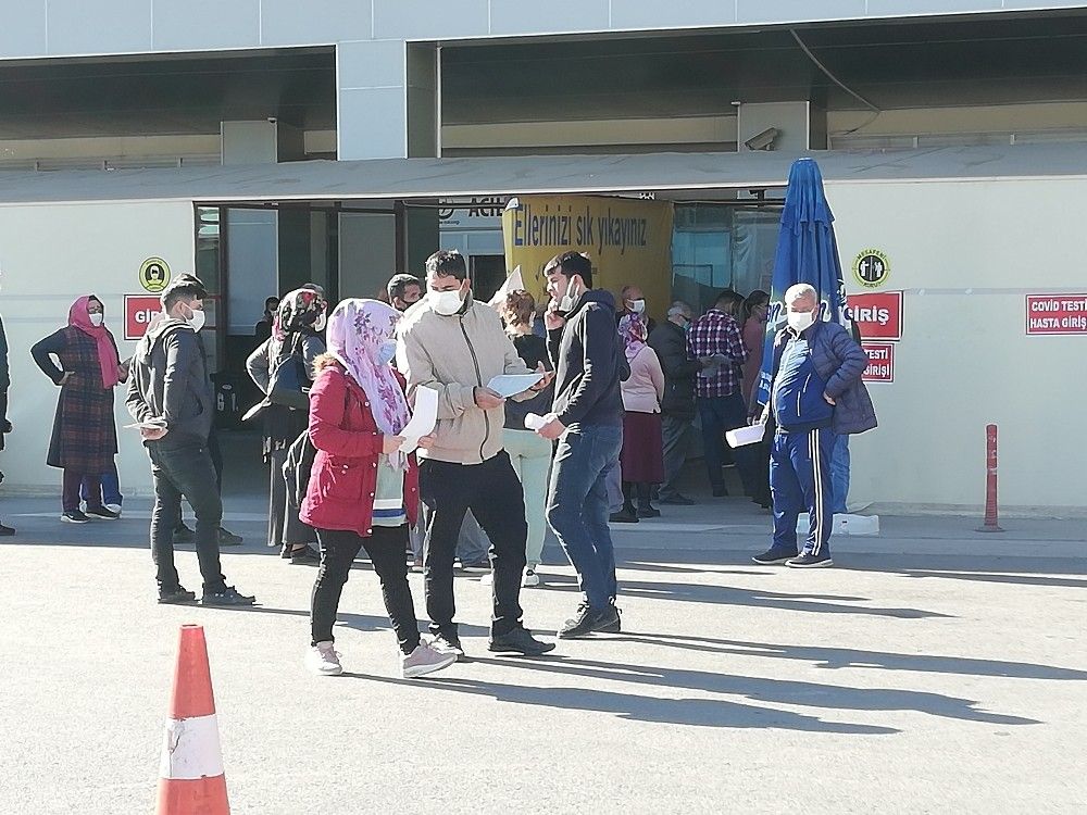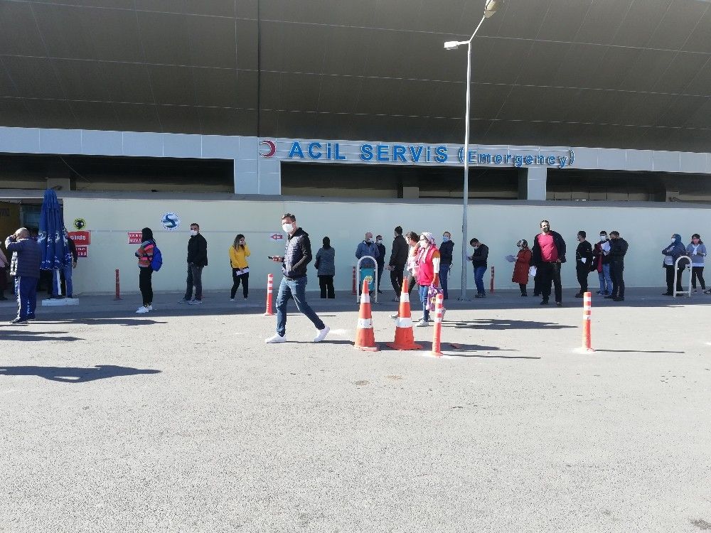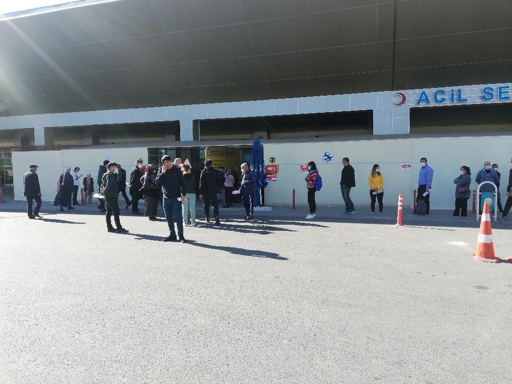 Kentteki devlet hastanelerinde çok sayıda vatandaş korona virüs şüphesiyle test yaptırmak için başvuru yaptı. Sosyal mesafeye uyarak sıra bekleyen vatandaşların test için metrelerce kuyruk oluşturduğu görüldü.