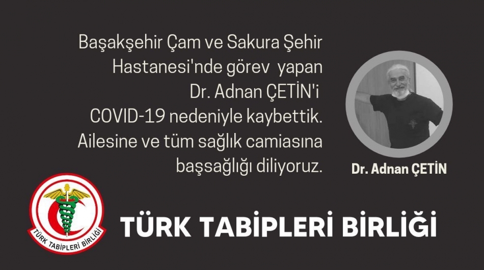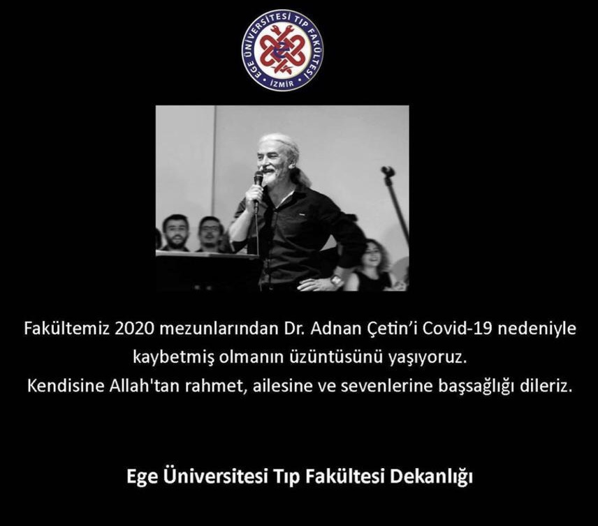 Dr. Adnan Çetin, Ege Üniversitesi Tıp Fakültesi 4. sınıf öğrencisiyken ara verdiği eğitimine 25 yıl sonra dönmüş, mezun olduktan sonra 4 Mayıs 2020'de Başakşehir Çam ve Sakura Şehir Hastanesinde göreve başlamıştı. Çetin'in İzmir Sağlık Bilimleri Üniversitesi Tepecik Eğitim ve Araştırma Hastanesinde dün vefat ettiği ve cenazesinin İzmir'de toprağa verildiği öğrenildi.