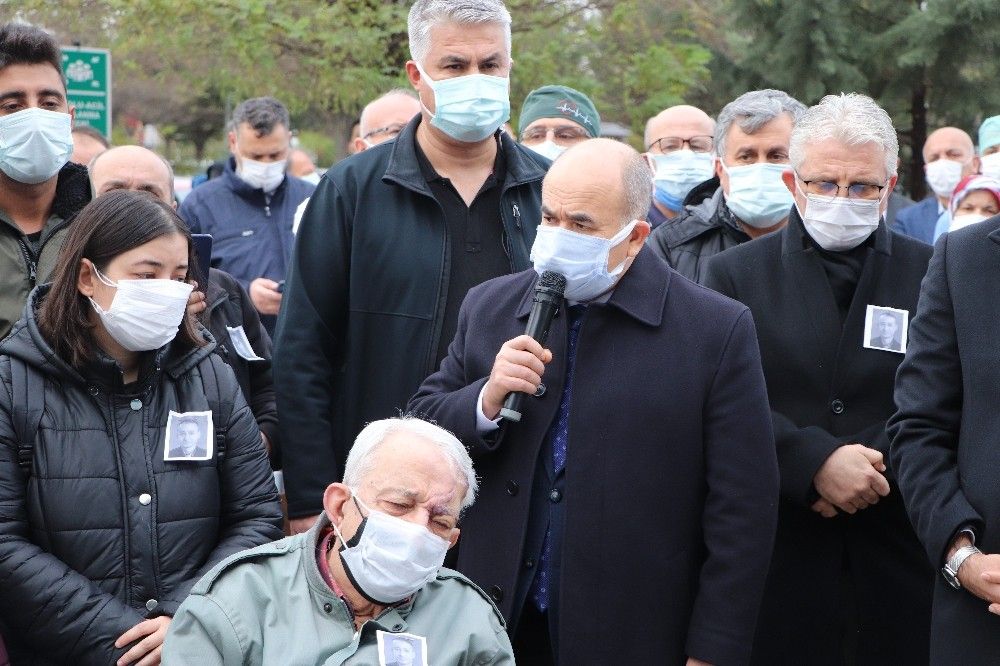 Cenaze töreni ilk olarak hastane önünde gerçekleşen konuşmalar ile başladı. Törende konuşan Samsun Eğitim ve Araştırma Hastanesi Dahiliye Uzmanı Dr. Abdül Celil Kayabaş, "Gerçekten çok üzgünüz. Sadece bir hekim arkadaşı değil, aynı zamanda çok yakın bir ağabeyimizi kaybettik. Entelektüel bir insanı kaybettik. Pandemi boyunca en ön safta mücadele eden arkadaşımızı kaybettik. Yoğun bakımda 10-15 gün takip etmek zorunda kaldım. Bu çok ağır bir yük. Pandemiyi görmezden gelen, Covid-19 virüsünü hafife alan, bu konuda herhangi bir şey yapmayanlara biz hakkımızı helal etmiyoruz" ifadelerini kullandı.