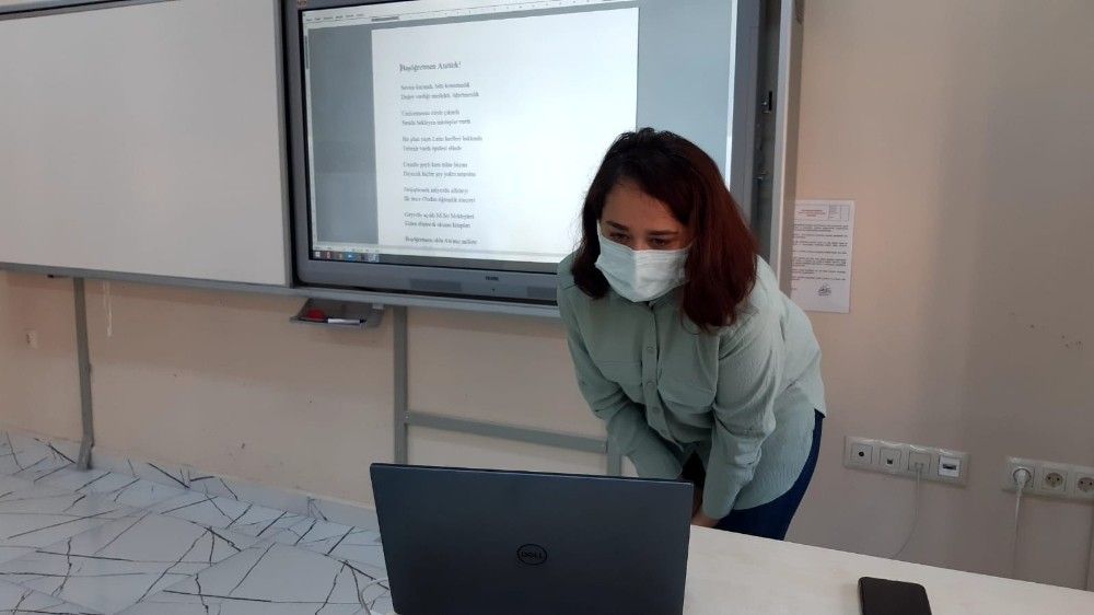Afyonkarahisar'da bir ilkokul öğretmeni, yakalandığı korona virüsü atlatmasının ardından karantina süresi biter bitmez soluğu çok sevdiği sınıfında aldı. Boş sınıfta öğrencileri ile online olarak ders yapan Afyonkarahisar TOKİ Mevlana İlkokulu 1. sınıf öğretmeni Akile Tikit, boşta olsa çok özlediği sınıfına kavuştu.