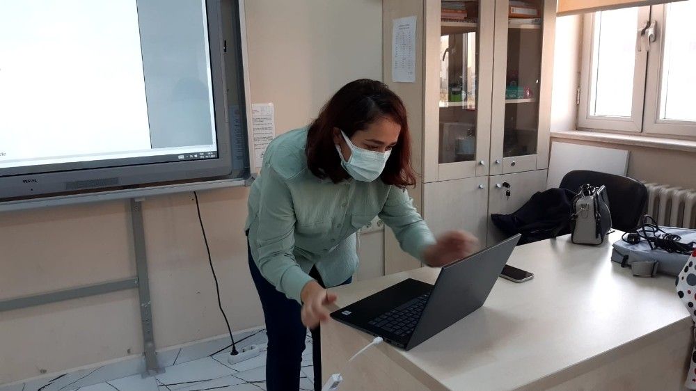 Afyonkarahisar TOKİ Mevlana İlkokulu 1. sınıf öğretmeni Akile Tikit, geçtiğimiz günlerde korona virüse yakalandı. Uzun süre tedavi gören ve hastalığı atlatan Akile öğretmen, karantina süresinin bitmesinin ardından soluğu çok sevdiği okulunda aldı. Boş sınıfta öğrencileri ile EBA üzerinden online olarak ders yapan Tikit, karantina sürecinin çok zor olduğunu belirterek, öğrencilerini çok özlediğini söyledi. Tikit, "Hiç kimsenin başına gelmesini istemem. Sadece kendimizin tedbir alması yetmiyor, herkesin tedbir alması lazım. Bu süreçte öğrencilerimizden de ayrı kalıyoruz. Herkesten ricamız maske, sosyal mesafe ve hijyenimize dikkat edersek inşallah bu süreci atlatacağız. Ciddi bir şekilde kötü bir hastalık. Çok özlüyorum öğrencilerimi. Tatillerde bile internet üzerinden ders yapıyorduk biz ama bu hastalık sürecinde çok zordu. Onlarla görüşemedik çok uzun bir süre, onlar da beni çok özlemiş, ben de onları çok özledim. Uzaktan da olsa onların sağlıklı olduğunu bilmek beni mutlu ediyor. İnşallah en kısa zamanda öğrencilerime kavuşmak istiyorum" dedi.