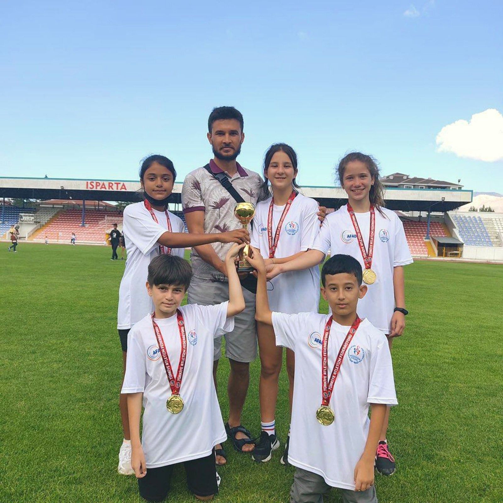 Köyceğizli öğrenciler Elif Duru Orhan, Rüya Ceren Yılmaz, Fatma Müzeyyen Ayhan, Umut Fatih Günay, Anıl Mert Acar ve antrenörleri beden eğitimi Öğretmeni Gökhan Esen'den oluşan Köyceğiz U12 atletizm takımı Isparta'da gerçekleşen Atletizm Türkiye şampiyonası bayrak yarışlarında ipi göğüsleyerek şampiyonluk kupasını kazandılar.