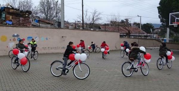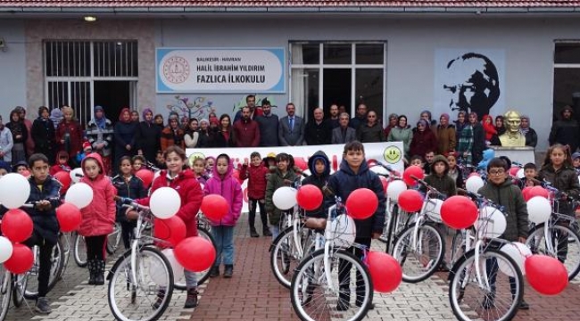 BALIKESİR'in Havran ilçesindeki, toplam 100 ilk ve ortaokul öğrencisine bisiklet hediye edildi.