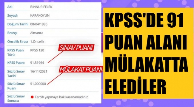 KPSS'de 91 puan almasına rağmen mülakatta 51 puan verilmesi nedeniyle öğretmenlik hayali suya düşen Binnur Karakoyun'un isyanı, sosyal medyada büyük yankı uyandırdı.
