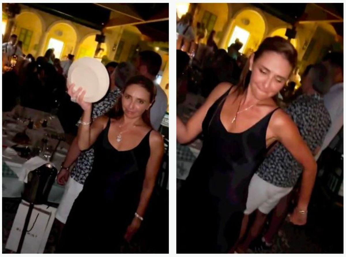 Görüntülerde 47 yaşındaki Navka, eline aldığı tabakları birbirine vurarak teker teker kırdı.
