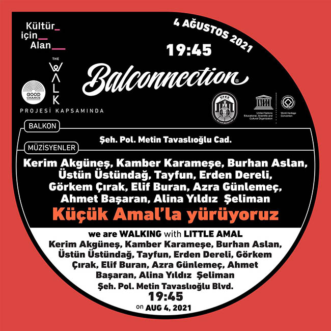 Dünyanın en büyük sorunlarından biri olan göç olgusuna dikkat çekmek için 8000 km yol kat edecek Küçük Amal Gaziantep’ten başlayan yürüyüşünün 1500. Kilometresinde Efes Selçuk’ta olacak. Küçük Amal, Balconnection inisiyatifi ev sahipliğinde Efes Selçuk Belediyesi katkılarıyla ilham veren kentin çocuklarıyla ve müzisyenleriyle bir araya gelecek.