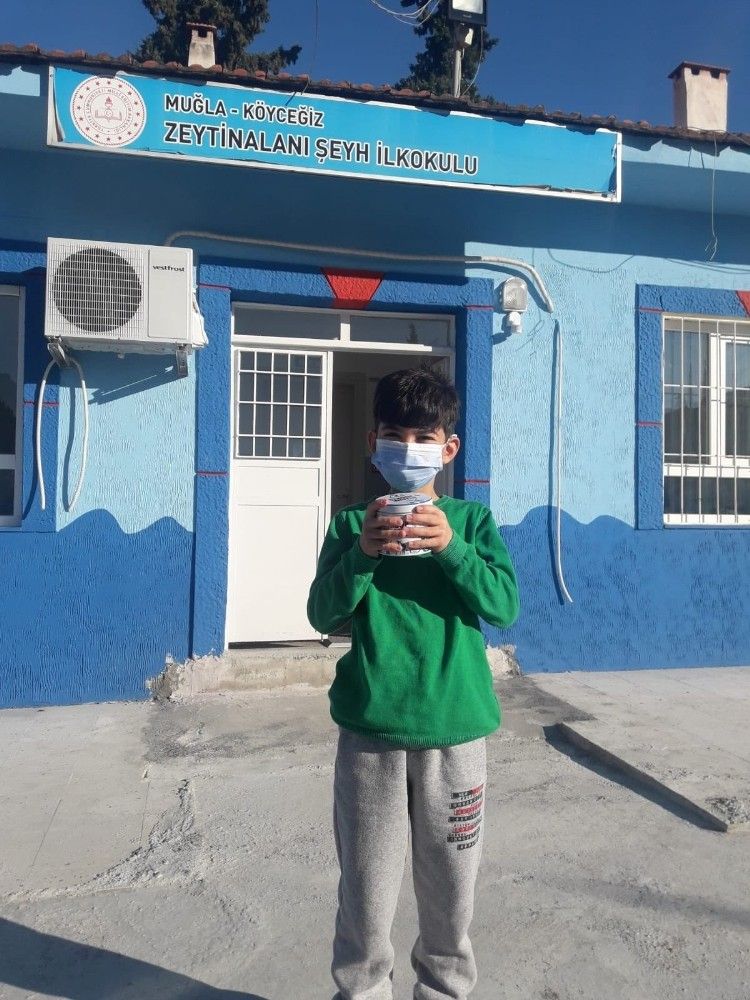 Muğla'nın Köyceğiz ilçesi Zeytinalanı Şeyh İlkokulu öğrencisi Ege Erken, harçlıklarını okulunun tadilatı için bağışladı.
