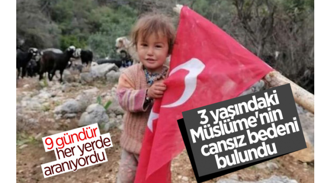 Mersin'in Gülnar ilçesinde, 10 Kasım'da ailesinin kırsal alanda çadır kurduğu sırada kaybolduğu belirtilen 3 yaşındaki Müslüme Yağal'ın cesedi bulundu.