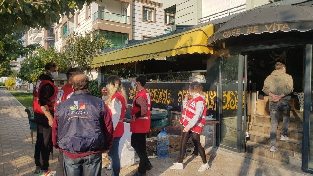 Depremin şiddetini en yakından yaşadığını dile getiren işletme sahibi Mustafa Yiğen, "Bayraklı'da Cafe de Vita isimli kafeyi kardeşim ile birlikte işletiyoruz. Depremin olduğu ilk günden bu yana, mekanımızı dışarıdan gelen AFAD görevlilerine, tüm depremzede vatandaşlarımıza açtık. Bugün 15'inci gün ve hala daha yardımlara devam etmekteyiz. Burada bireysel topladığımız yardımları da depremzede vatandaşlarımıza ulaştırdık. Sonrasında ise gelen yardımları Kızılay ve AFAD'a teslim etmekteyiz. Hala devletimiz vatandaşlarımızın yanında, biz de vatandaşlarımızın yanındayız. Bizim kimseden bir beklentimiz de yok, Allah'ın rızası için yaptık bunu" ifadelerini kullandı.