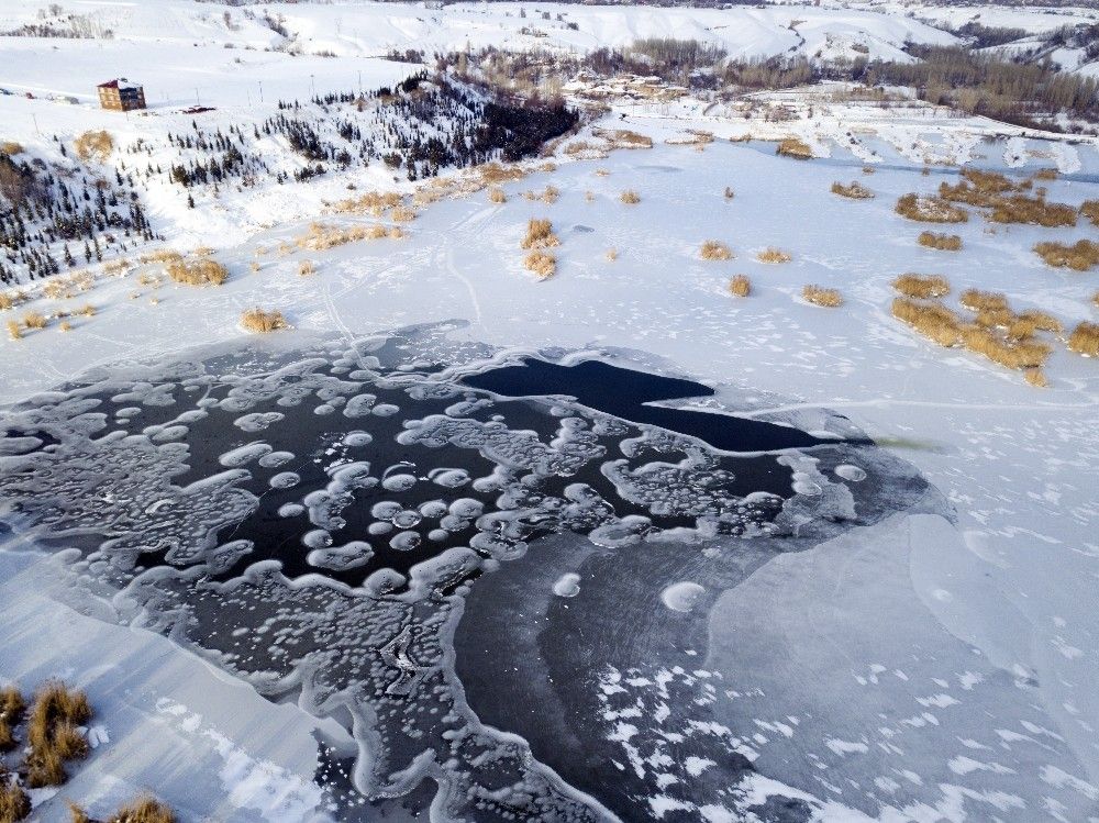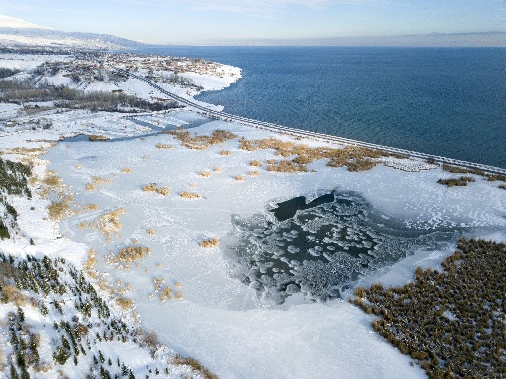 Bir haftadır dondurucu soğukların etkisini gösterdiği Ahlat'taki gölet ve bazı küçük şelaleler dondu. Ahlat'ı etkisi altına alan soğuk havalar nedeniyle ilçenin Yamlar mevki'inde bulunan ve onlarca kuş türüne ev sahipliği yapan Vali Uğur Boran Kuş Cenneti'nin yüzeyi de buzla kaplandı. Yüzeyi kaplanan kuş cennetinin doğal güzelliği havadan drone ile görüntülendi.