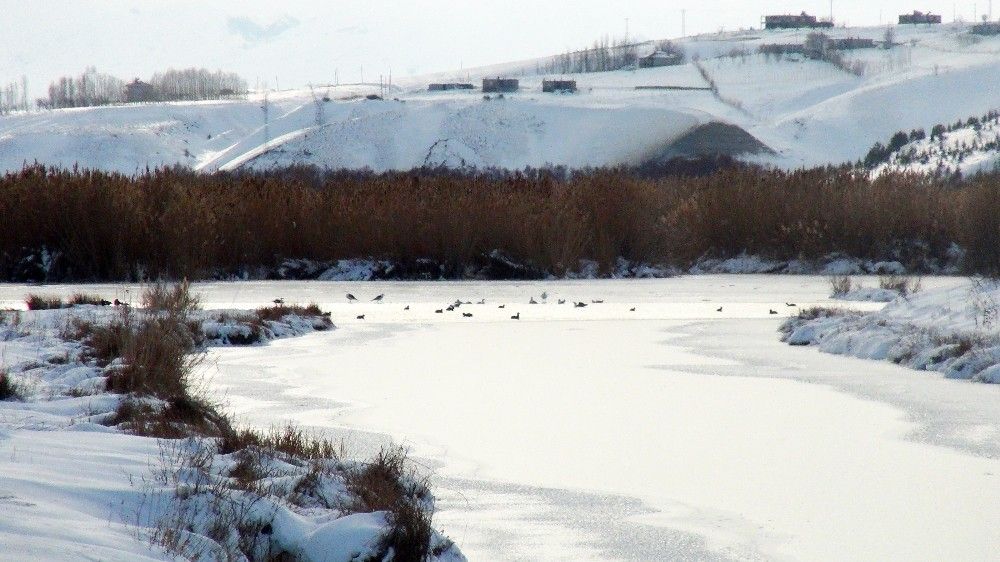 Bitlis'in Ahlat ilçesinde bulunan Vali Uğur Boran Kuş Cenneti şiddetli soğuklar nedeniyle dondu.