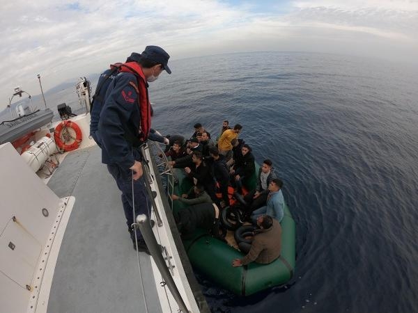AYDIN'ın Kuşadası ilçesi açıklarında, Yunanistan unsurlarınca Türk karasularına geri itilen lastik bot içerisindeki 75 göçmen kurtarıldı.