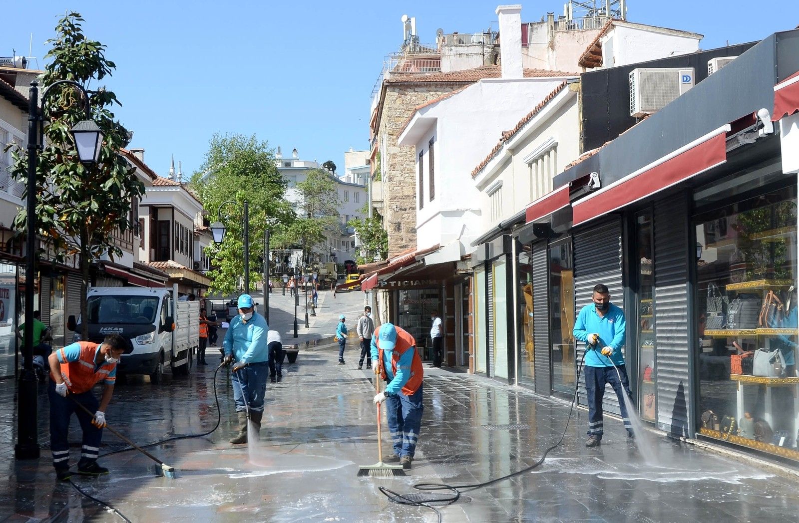 Türkiye genelinde, korona virüse yönelik önlemler kapsamında 17 Mayıs saat 05:00'te sona erecek olan tam kapanma dönemi başladı. Uygulamayla birlikte Kuşadası Belediyesi de tam zamanlı kapanma dönemini hizmette fırsata çevirmek için kolları sıvadı. Bu kapsamda Temizlik İşleri Müdürlüğü ekipleri tarafından kentin yenilenen turistik çarşıları, İnönü Caddesi, Hasan Reis Bulvarı ve sahil bandında korona virüse karşı detaylı temizlik ve dezenfeksiyon çalışması yapıldı. Dezenfeksiyon ekiplerinin güçlendirilmiş bitkisel formüllü doğaya zarar vermeyen temizlik ürünleriyle gerçekleştirdiği hijyen çalışması vatandaşlar tarafından büyük bir memnuniyetle karşılandı.