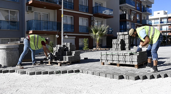 Farklı mahallelerde eş zamanlı olarak yürütülen yol yapım, bakım ve onarım çalışmaları kapsamında 1177 metrekarelik alanı kapsayan birbiri ile bağlantılı 3668 ile 3615 sokaklara kilit parke taşı döşemeyi sürdüren ekipler, bölgeye 1.009 metre de bordür döşeyecek.