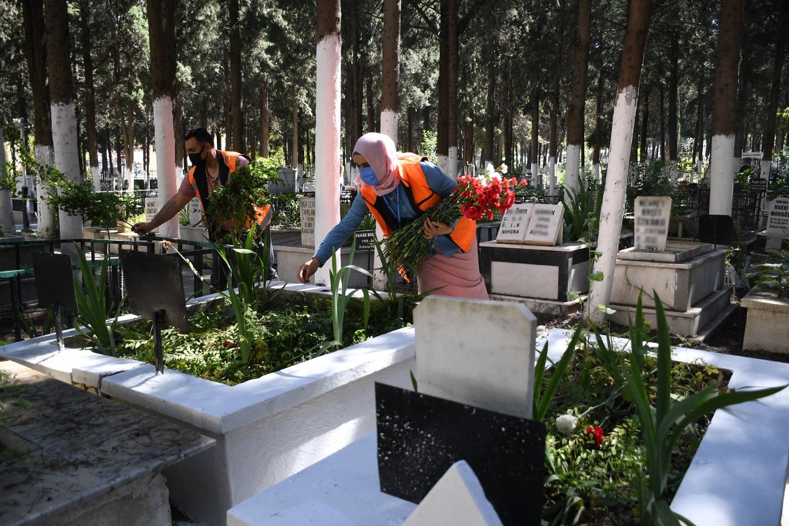 Kuşadası Belediyesi Sosyal Yardım İşleri Müdürlüğü, Covid-19 tedbirleri nedeniyle bayram öncesinde yakınlarının ve sevdiklerinin mezarlarını ziyaret edemeyen vatandaşlar için kentteki tüm mezarlara çiçek bırakırken Temizlik İşleri Müdürlüğü ise mezarlıklarda detaylı temizlik çalışması yaptı.