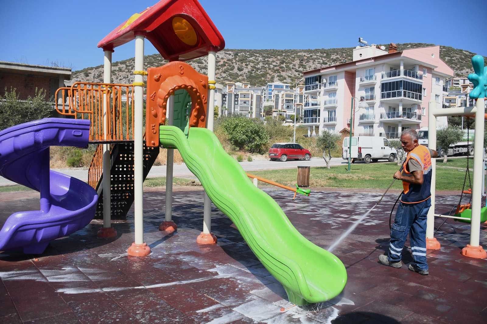 Kuşadası Belediyesi'nden parklarda temizlik çalışması