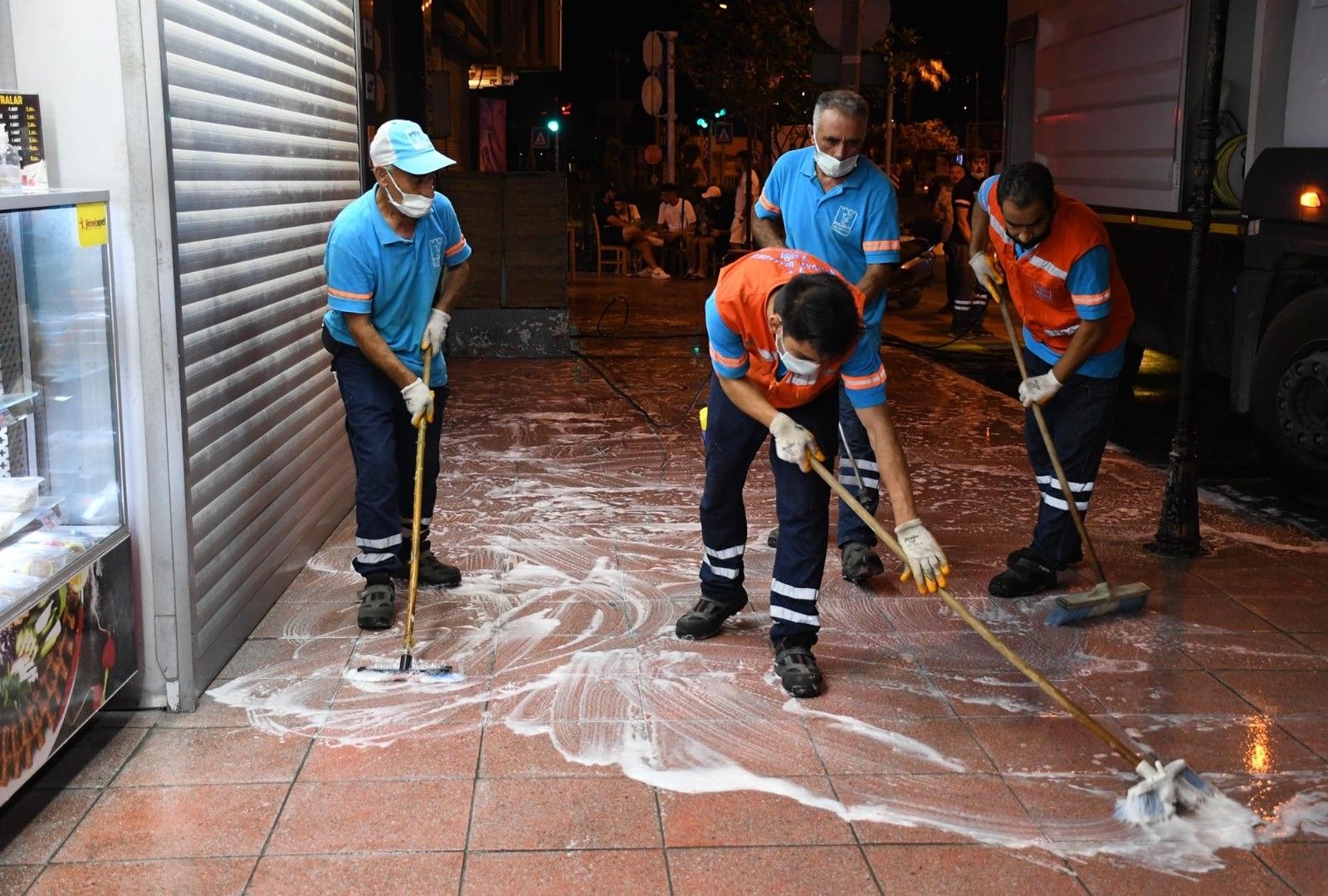 Pandemi sürecinde yürüttüğü çalışmalarla Türkiye'nin en başarılı 4'üncü ilçe belediyesi olan Kuşadası Belediyesi, kenti kademeli normalleşmenin 3'üncü aşamasına hazırlamak için gerekli çalışmaları tamamladı. Bu kapsamda Temizlik İşleri Müdürlüğü'ne (TİM) bağlı ekipler, 7/24 esasına göre yürüttükleri mesai ile kentin tüm sokaklarını köşe bucak temizleyerek dezenfekte etti.
