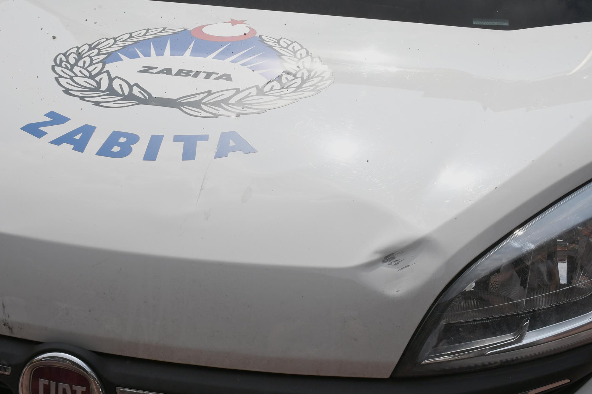 Kuşadası Belediyesi'nin zabıta aracına çirkin saldırı