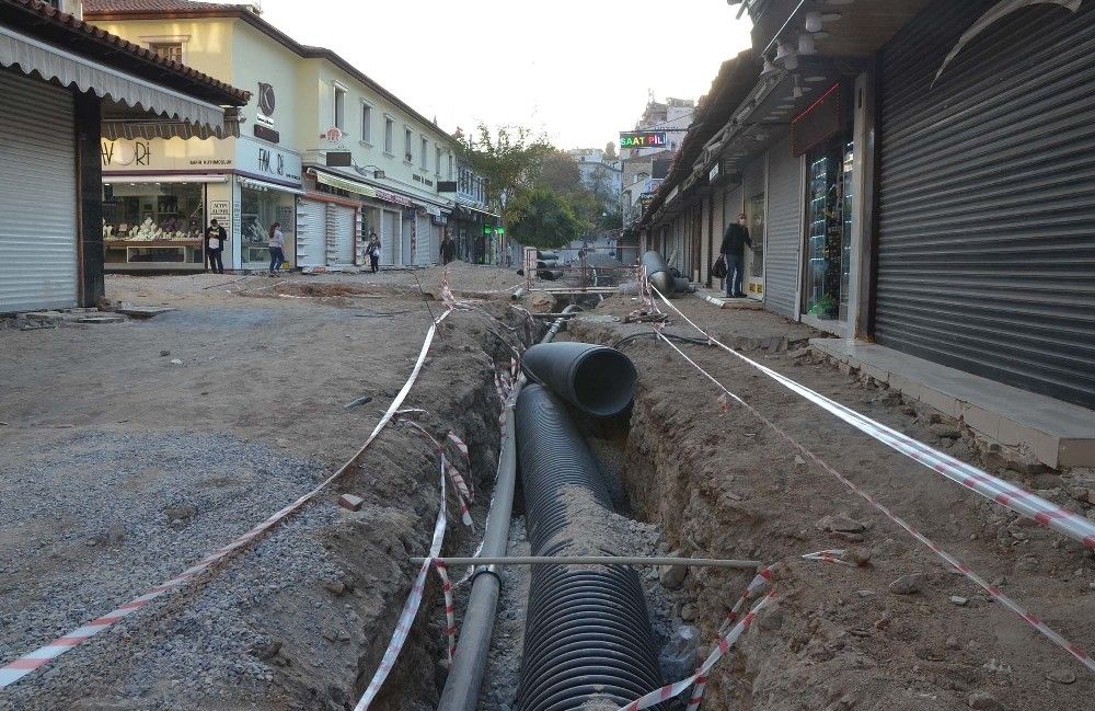 Kuşadası çarşılarında yenileme çalışmaları 6 noktada eş zamanlı sürüyor