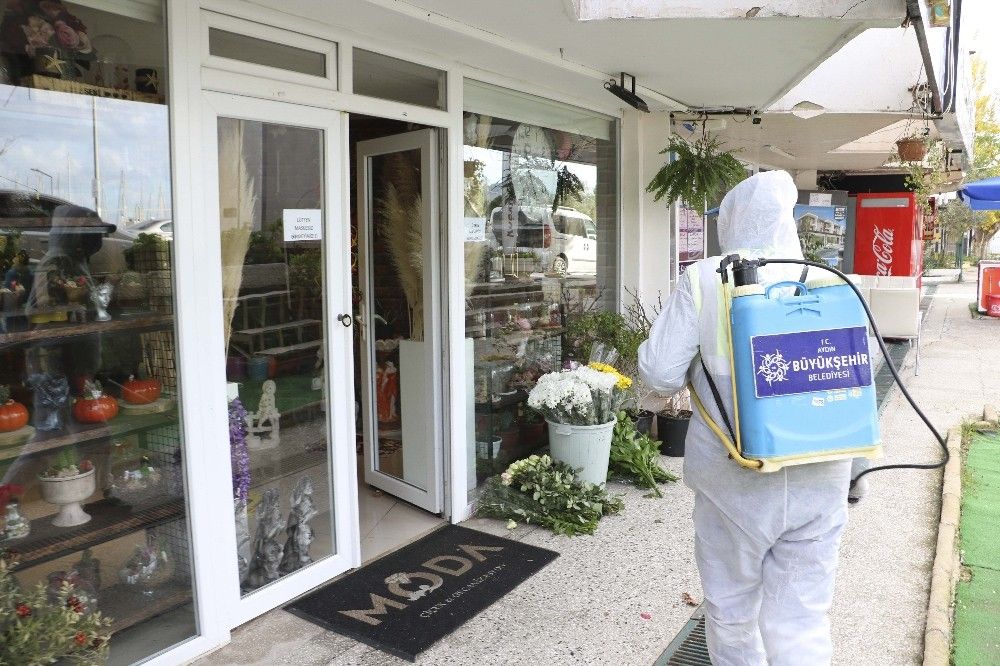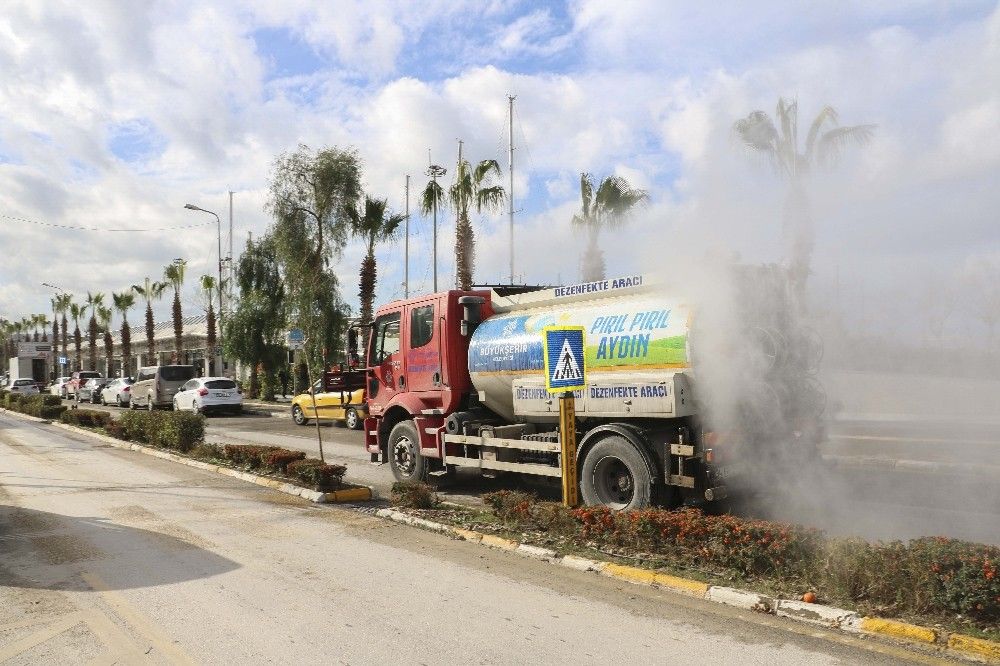 Pandemi sürecinde uzmanların maske, mesafe ve hijyen tedbirlerine uyulması yönündeki ısrarlı mesajları sürerken, korona virüse karşı ilk günden bu yana kapsamlı olarak çalışmalar yürüten Aydın Büyükşehir Belediyesi'nin de dezenfekte çalışmaları devam ediyor.
