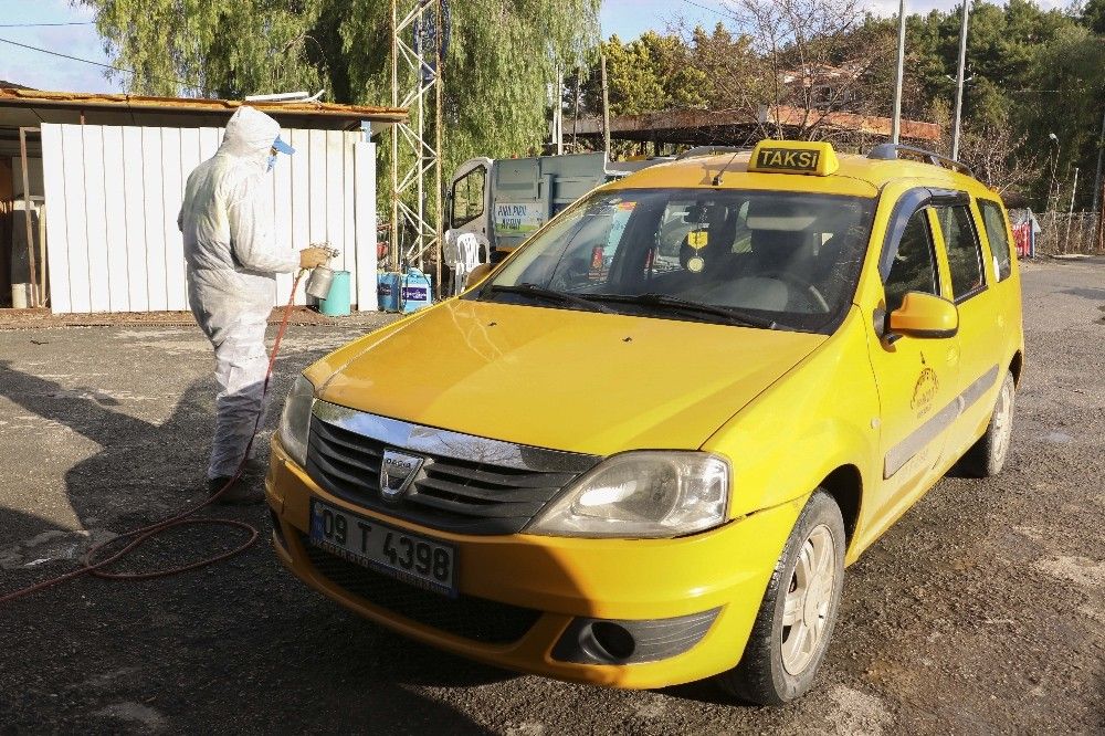 Taksiler ve dolmuşlar dezenfekte ediliyor