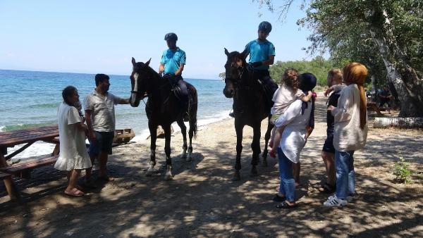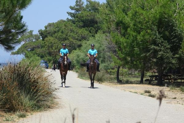 Milli park koyları ve plajlarında her gün 3 atlı jandarmadan 2'sinin, sezon sonu olan 22 Eylül'e kadar devriye görevi yapacağı belirtildi. (DHA)