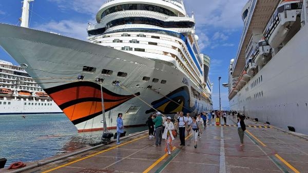 Kuşadası ilçesi Ege Port Limanı'nda demirleyen Panama bayraklı MSC Splendia, Norveç bayraklı Viking Star, Bahama bayraklı S.S. Voyager ve Palau bayraklı Aida Blu toplamda 8 bin 200 turist getirdi.