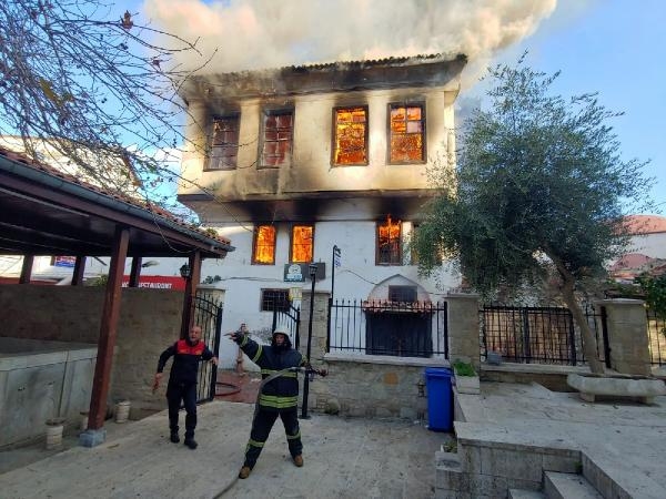 Kuşadası'nda 100 yıllık ahşap ev yandı