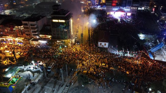 Kutlamalar, akşam saat 19:00’da Kısmet Otel Kavşağı'ndan başlayan 100’üncü yıl korteji ile devam etti. Kuşadası Belediyesi tarafından düzenlenen korteje yaklaşık 35 bin kişi katıldı.