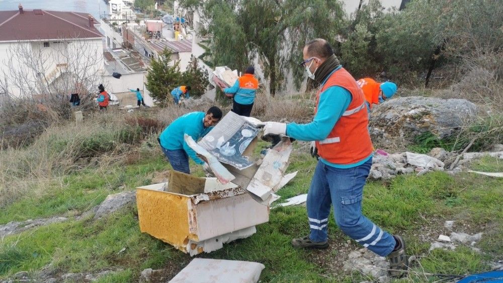 Aydın'ın Kuşadası Belediyesi daha temiz bir çevre hedefiyle yürüttüğü çalışmalara davam ediyor. Bu kapsamda Temizlik İşleri Müdürlüğü (TİM) ekiplerinin kent merkezindeki Kese Dağı mevkiinde yaptığı çalışmada yaklaşık 200 kilogram atık toplandı.