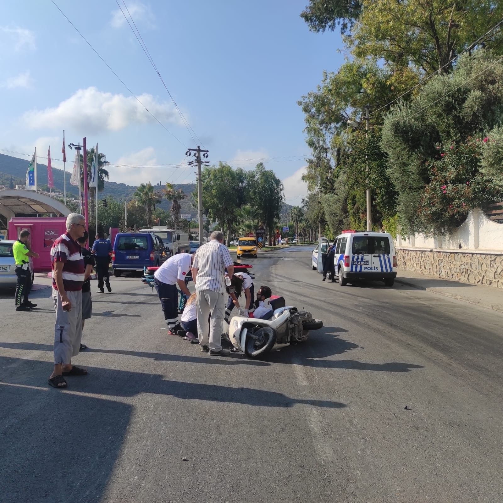 Aydın'ın Kuşadası ilçesinde petrol istasyonuna girmek isteyen otomobil sürücüsü karşı şeritten gelen motosiklete çarpması sonucu motosiklet sürücüsü yaralandı.