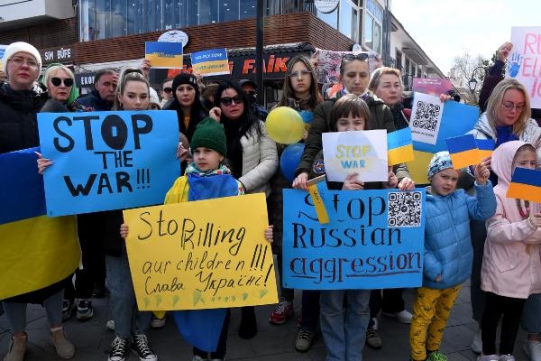 Kuşadası Ukrayna Kültür Derneği Başkan Yardımcısı Olena Burgaç, Rusya'nın Ukrayna'ya karşı başlattığı savaşta çocukların ve sivillerin ölmeye devam ettiğini belirterek, "16 Mart'ta işgal kuvvetleri, Mariupol Drama Tiyatrosu'na bomba attı. Binanın orta kısmı yıkıldı. Hava saldırısı sırasında siviller ve mülteciler, tiyatronun kasasında saklanıyordu. Tiyatro binasının önünde ve arkasında büyük harflerde 'çocuklar' yazısı vardı ama buna rağmen bombalar atıldı. Tiyatro binası enkazında bine yakın kişi olduğunu biliyoruz. Rus ordusunun, enkazda çalışmalar yürüten kurtarma ekiplerine ateş açtığını ve bu yüzden de çalışmaların sık sık durduğunu biliyoruz. Artık savaşın bir an önce durdurulmasını istiyoruz. Çocuklarımızın üzerine bombalar, füzeler düşmesin" diye konuştu. (DHA)