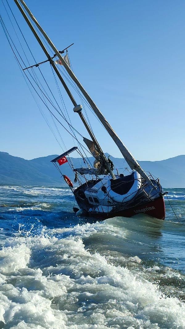 Marmaris Limanı'na kayıtlı, içerisinde 3 kişinin bulunduğu Tangerina isimli yelkenli tekne saat 18.30 sıralarında Kuşadası'na doğru seyrederken, Milli Park açıklarında yakıtı bitti. Teknede bulunan 3 kişi şiddetli rüzgâr nedeniyle olduğu yere demir atamayınca, Sahil Güvenlik ve Güzelçamlı barınağından yardım istedi. Şiddetli rüzgârın fırtınaya dönüşmesi sürüklenen tekne Kuşadası Nazilli Sitesi önünde karaya oturarak yan yattı. Teknedeki üç kişi atlayarak kurtulurken, sağlık durumlarının iyi olduğu bildirildi. Fırtınanın dinmesinden sonra yelkenli tekne ile ilgili kurtarma çalışmalarına başlanacağı öğrenildi. (DHA)