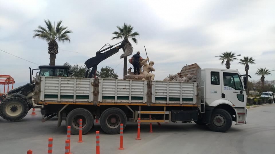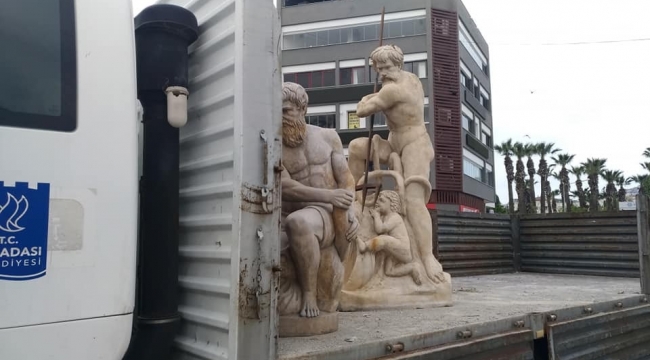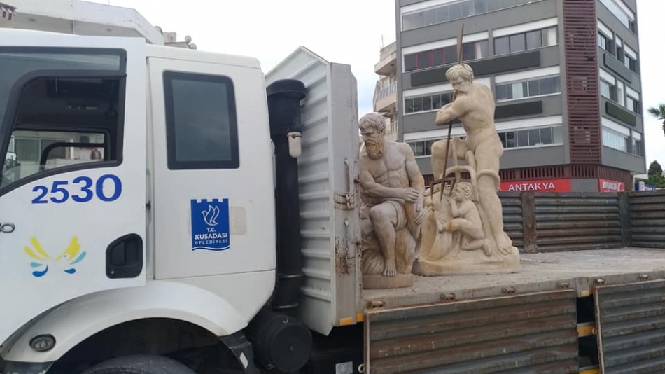 Kuşadası'nın ünlü Poseidon heykeli kaldırıldı