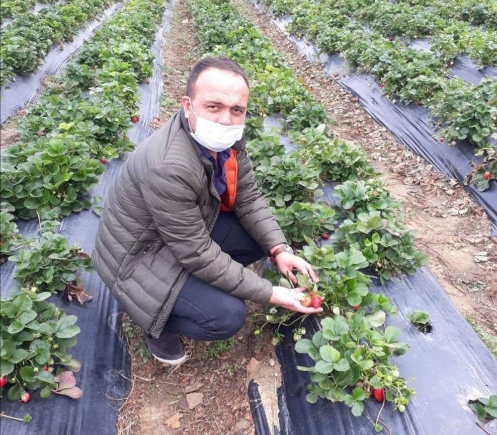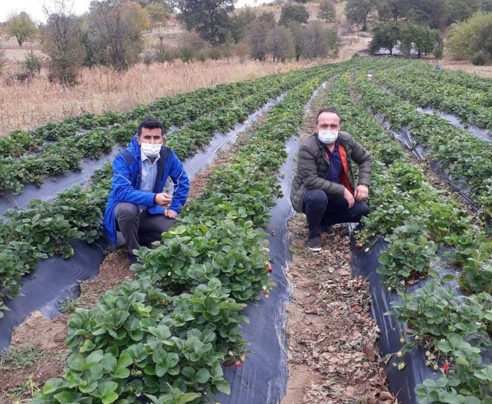 Kütahya'da devlet desteği ile dikilen çilekler ürün verdi