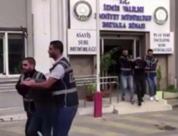 İZMİR'in Bayraklı ilçesinde, kuyumcu dükkanından toplam 3 milyon lira değerindeki ziynet eşyası çalıp kaçmak isterken 15 dakikada içinde yakalanan maskeli 4 şüpheli, adliyeye sevk edildi.
