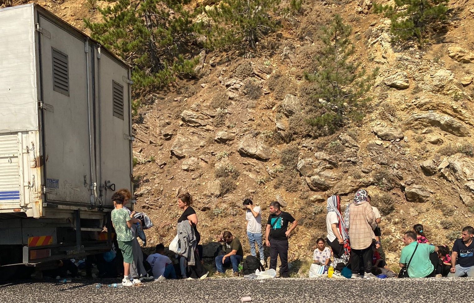 Lastiği patlayan TIR'dan onlarca sığınmacı çıktı