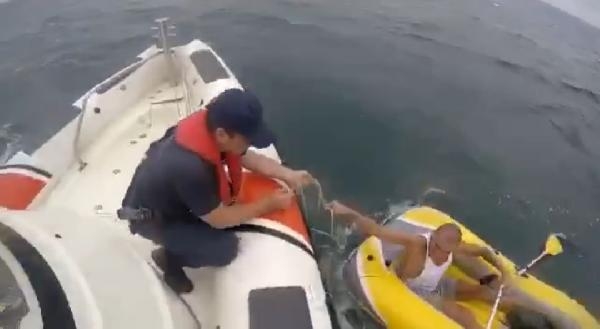 Lastik botla sürüklenirken Sahil Güvenlik kurtardı