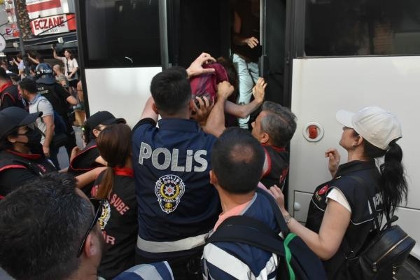 İzmir'de bir araya gelerek yürüyüş yapmak isteyen LBGT üyelerine polis müdahale etti, çok sayıda kişi gözaltına alındı.